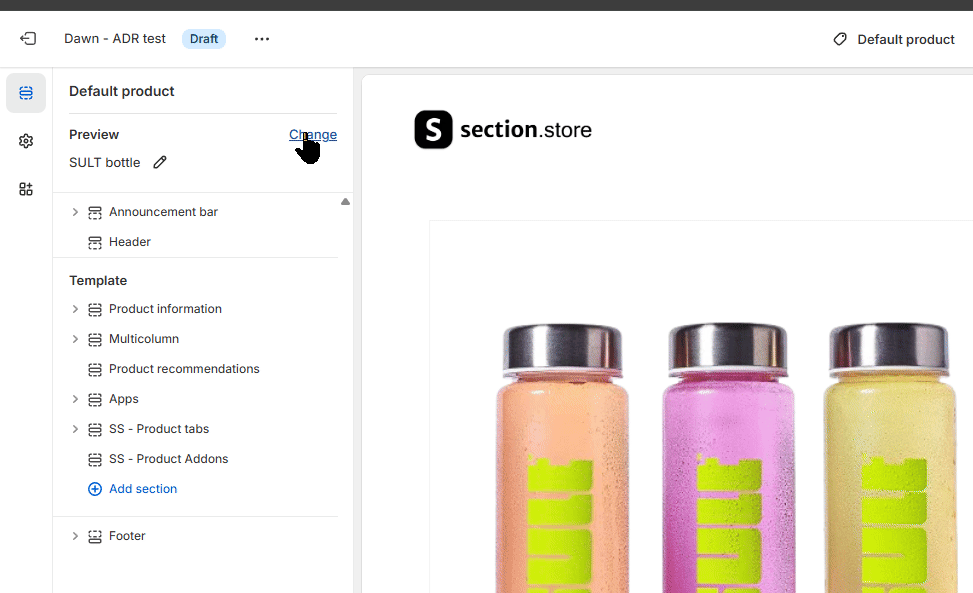 On the "Preview" group, click the "Change" link and select your product you wanted to update the product template.